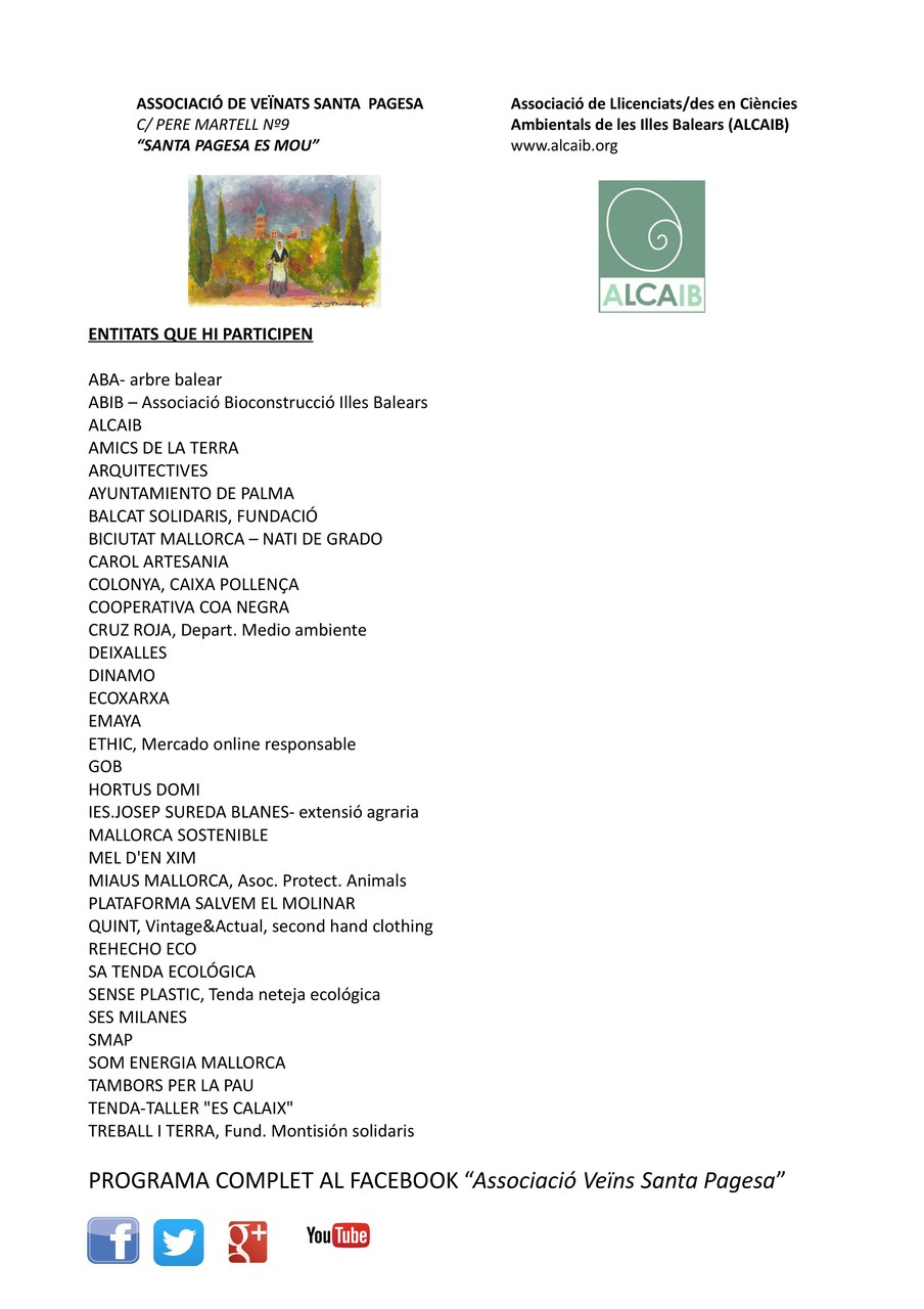 La diada fou organitzada, un any més, per l'ALCAIB i l'Associació de Veïns de Santa Pagesa. Les dues associaciones col·laborarem i treballàrem de valent per a que tot sortis bé i es pot ben dir que ho aconseguirem!